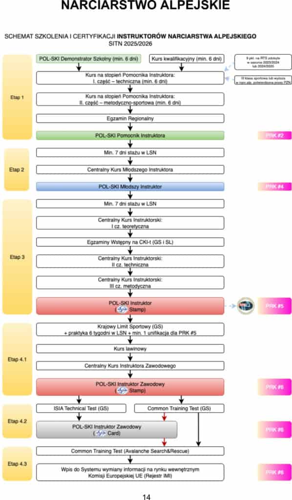 Pol-Ski Pomocnik Instruktora jest etapem w uzyskiwaniu pełnych uprawnień instruktorskich. Celem kursu jest opanowanie podstawowej wiedzy niezbędnej dla przyszłych nauczycieli narciarstwa. Należy wykazać się poprawną techniką jazdy na nartach, opanowaniem podstaw metodyki (praca z grupą) oraz umiejętnością jazdy sportowej.